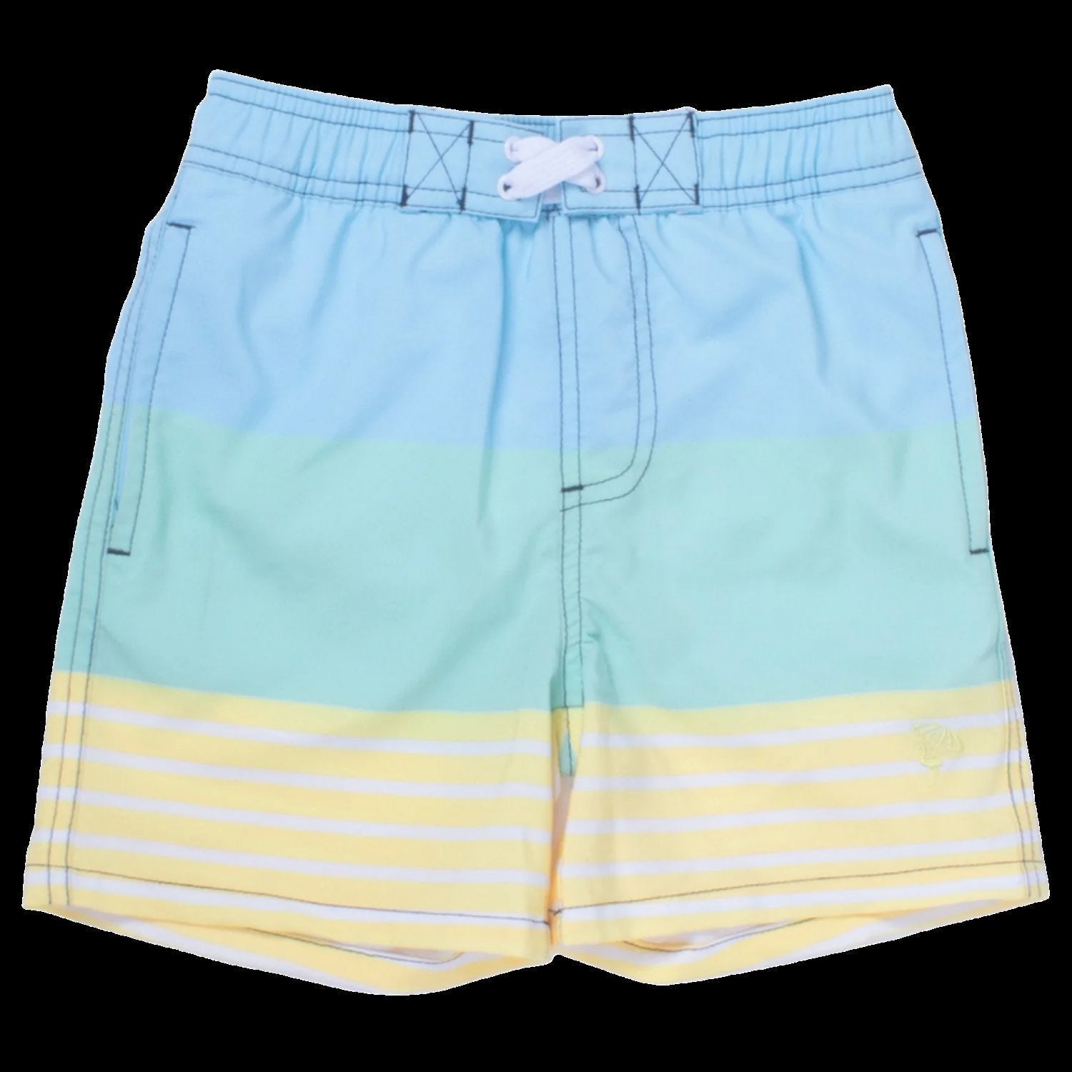 Shade Critters 4 Way Stretch Swim Trunk in Striped Colorblock. Featuring Sun Protective Fabrics with a upf50+ rating.