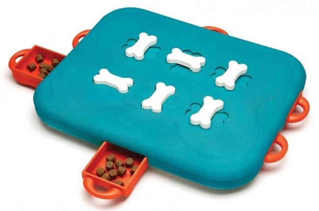Unique to the Nina Ottosson Dog Casino dog game are the locking bone pieces. If your dog is good at solving puzzles, introduce them to a new challenge by simply twisting the bones on top to lock the drawers.